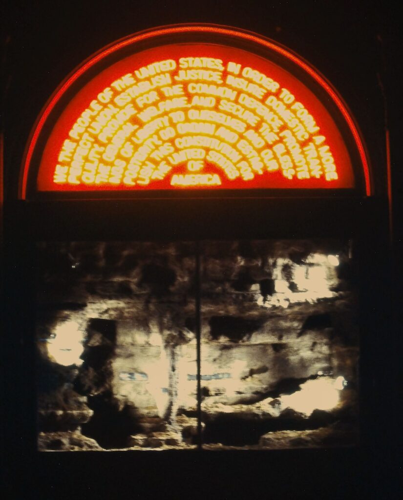This installation uses Plato’s famous allegory of the cave to cast a contemporary light on the state of the U.S. Constitution—particularly the fragile tension between its lofty ideals and our lived reality.