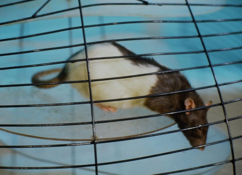 Five rats occupy the Buddha cage.
