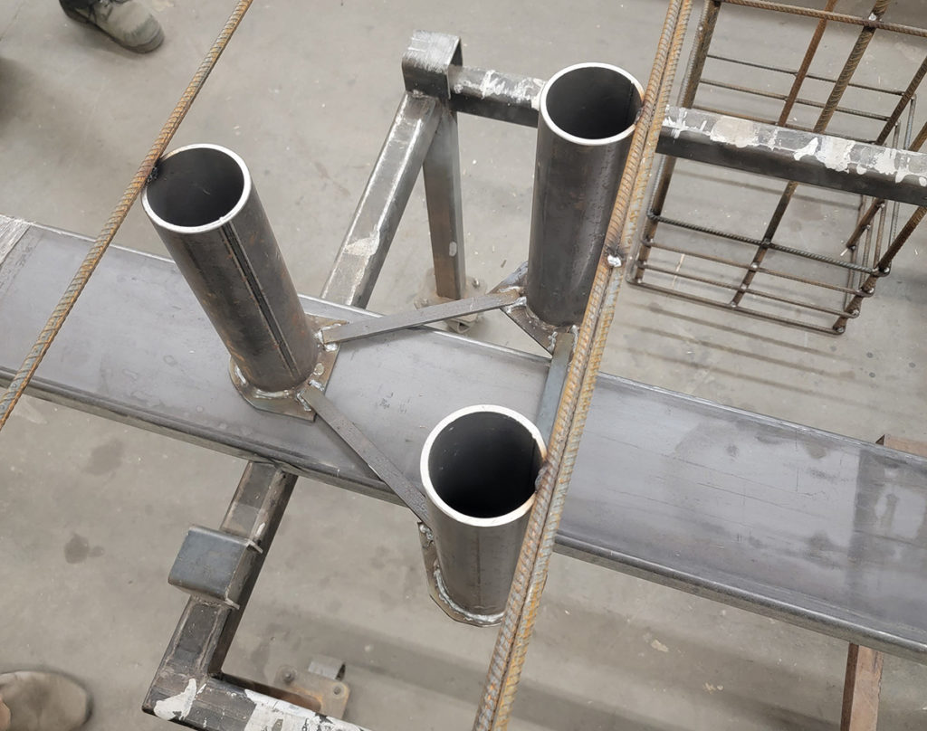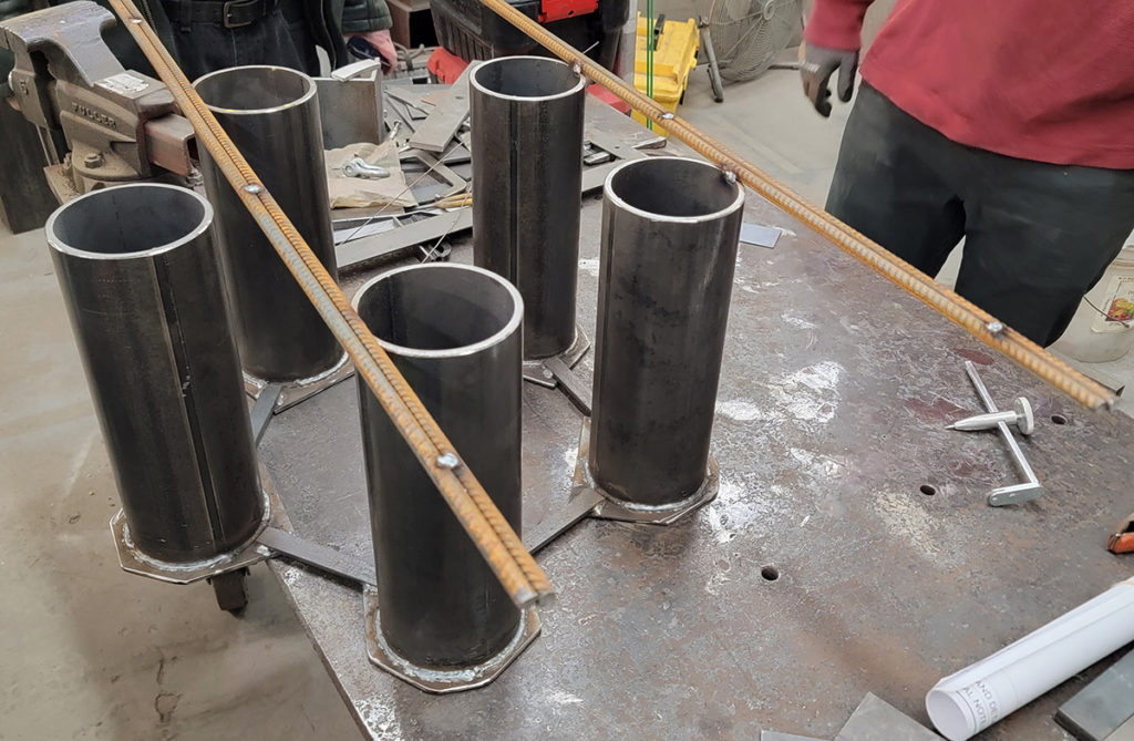 Inspecting the foundation assemblies and cages. They were expertly fabricated.