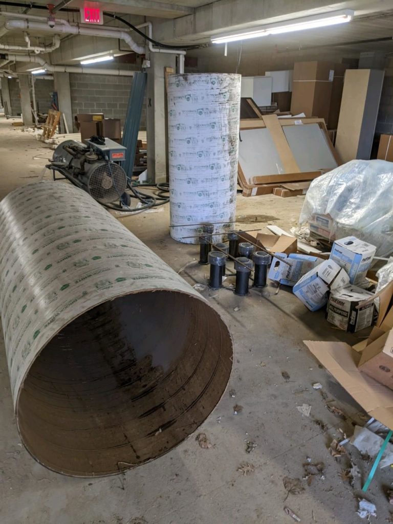 On April 20th the foundation sonotubes, rebar cage and retainer assemblies were delivered to the site. The sonotubes were put inside.
