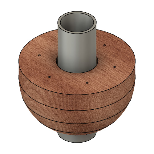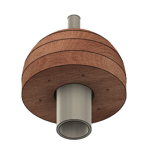 The next thing to do is to create the CAD STL files to be used by the CNC machine. After consulting with Hadi and Rob we have decided to use a 3 7/8″ hole in the large 10.5″ seedpod. Using the same logic on the small Seedpods, we will add 3/8″ to the 2 7/8″ OD diameter, establishing a center hole of 3 1/4″.