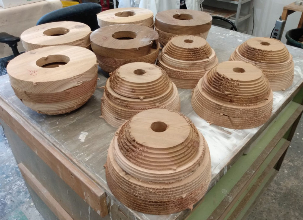 1. The disks will be cut (CNC) from rough sawn cedar, which varies slightly in width either side of 1 – 3/4″.