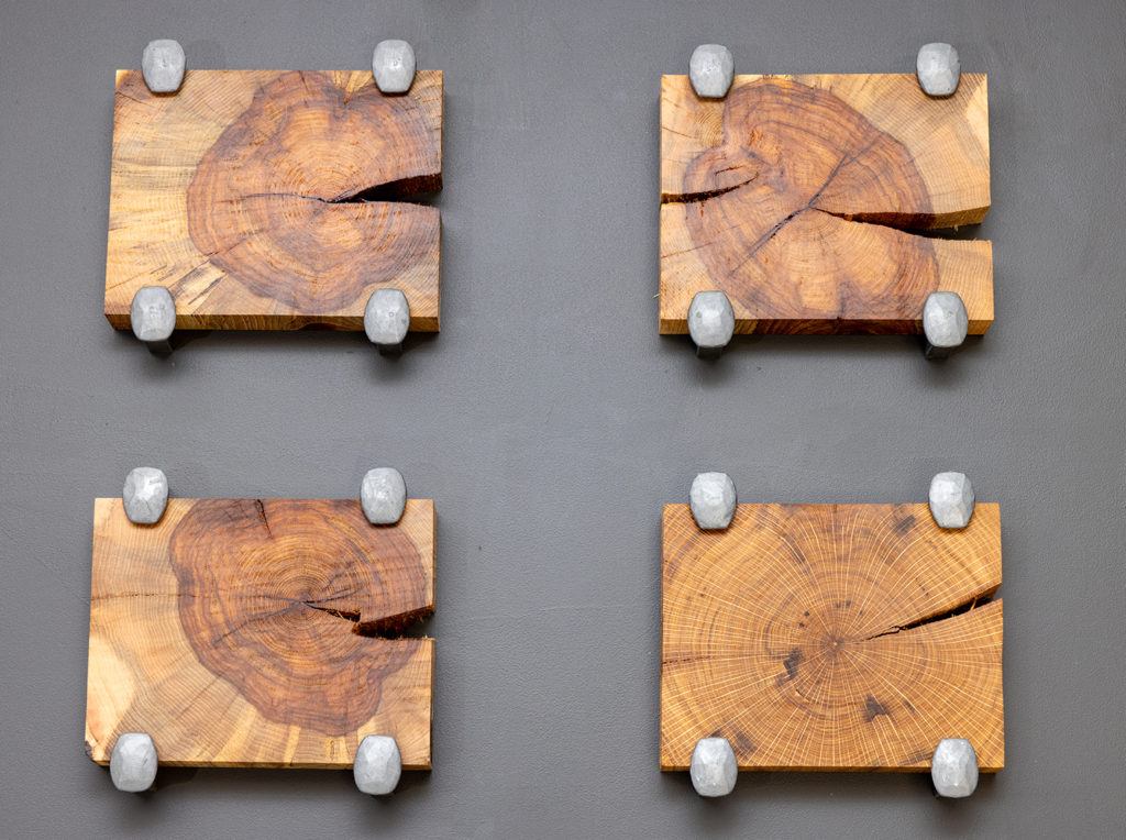 Materials: Oak & 3d-printed PLA railroad spikes.